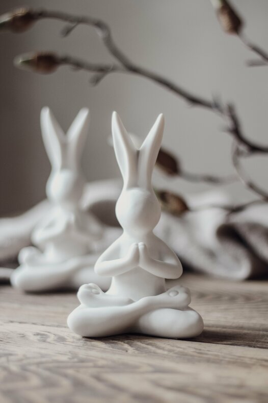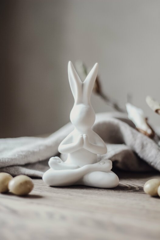 Underbar yoga påskhare tillverkad i keramik med vit matt finish.