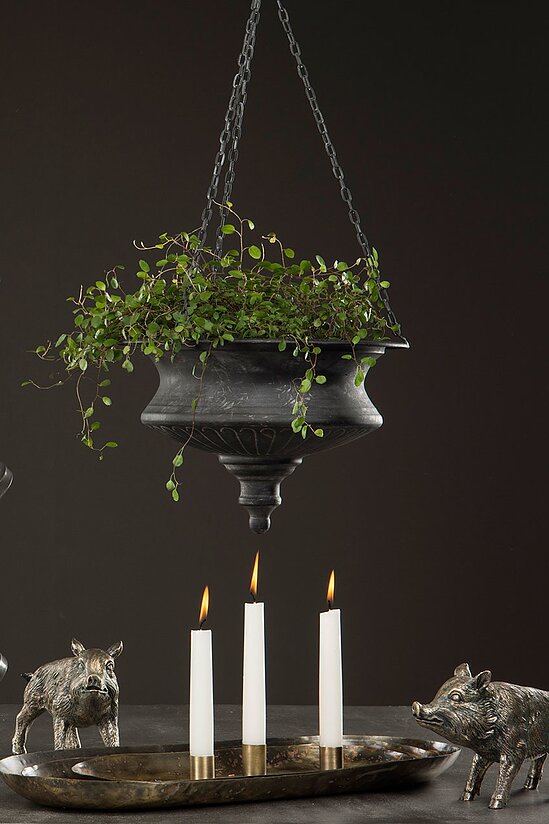 Vacker mattsvartfärg ampel med fin dekordetalj. Underbar att dekorera din trädgård/uterum/balkong med din favoritblomma. Går lika bra att dekorera med
