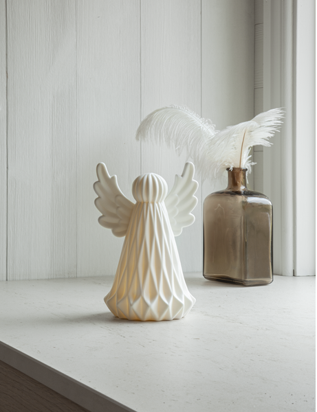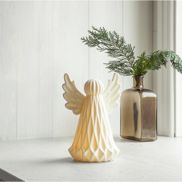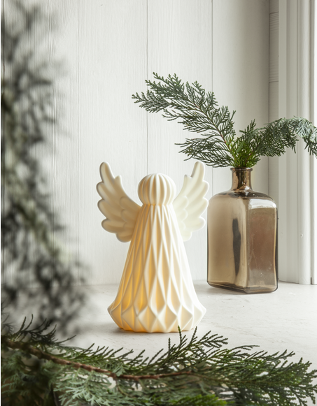Dekorativ och vacker led ängel i porslin med fina detaljer som lyser och skapar stämning i hemmet. Den är batteridriven och enkel att placera då den är helt sladdlös. Placera denna härliga ängel där det behövs att tillföras lite extra ljus.