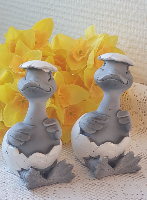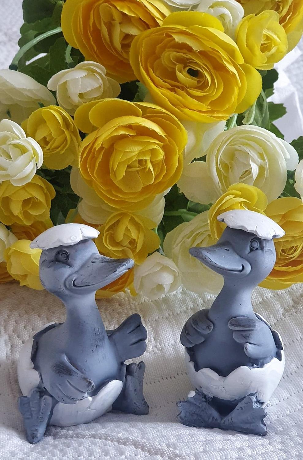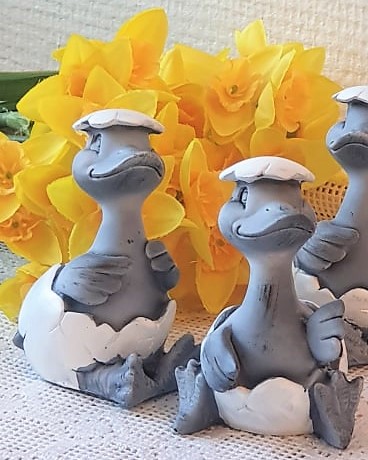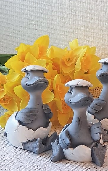Söta små sittande ankor i ett äggskal. Fint påskpynt!