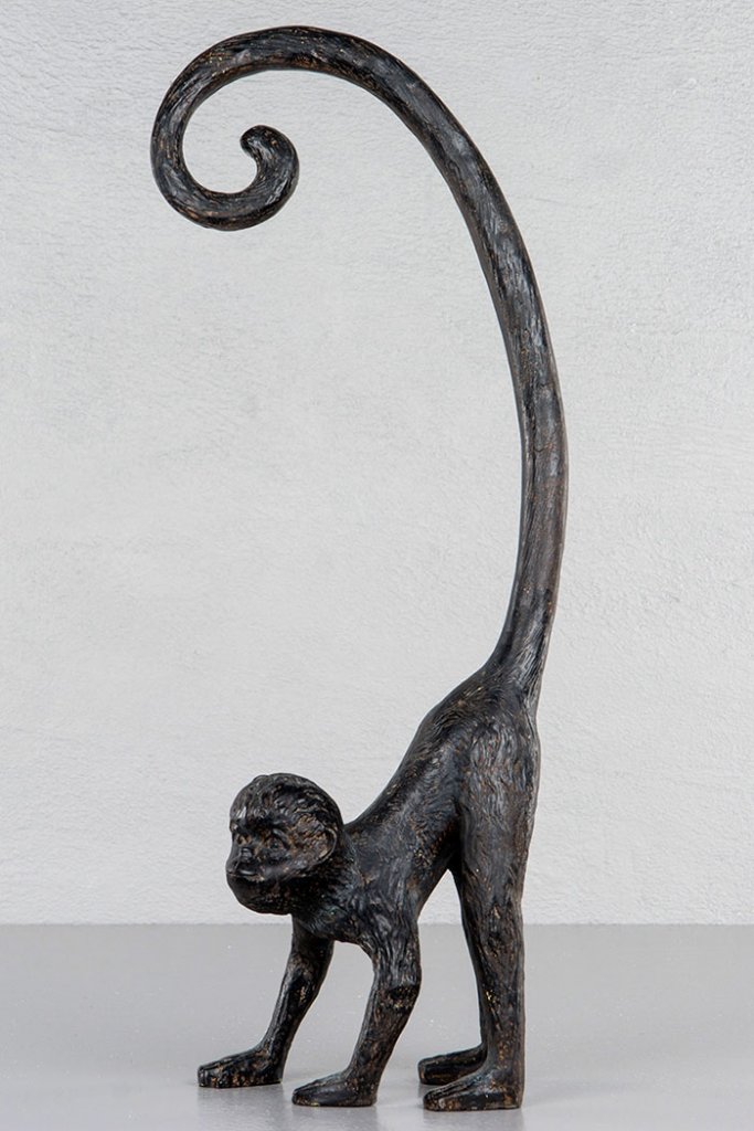 Tuff och trendig inredningsdetalj med en apa i svart med en lång böjd svans.
