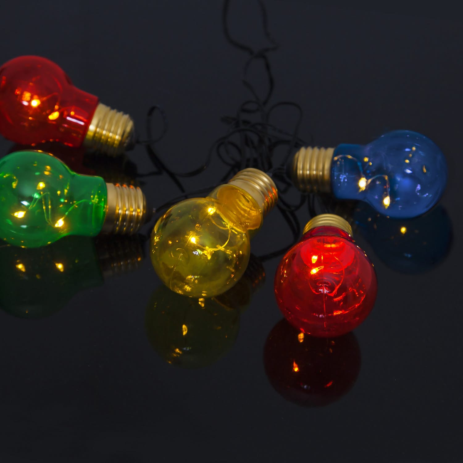 Batteridriven partyljusslinga med 5 olika färgade LED-lampor. En härlig partyslinga som skapar en härlig mysbelysning både utomhus och inomhus. Slingan har en inbyggd timerfunktion, vilket innebär att den lyser i 6 timmar och är sedan släckt 18 timmar. Slingan tänder sedan igen automatiskt efter 18 timmar, alltså samma tid som den sattes på. Glow drivs av 3 stycken AA-batterier, som ej ingår.