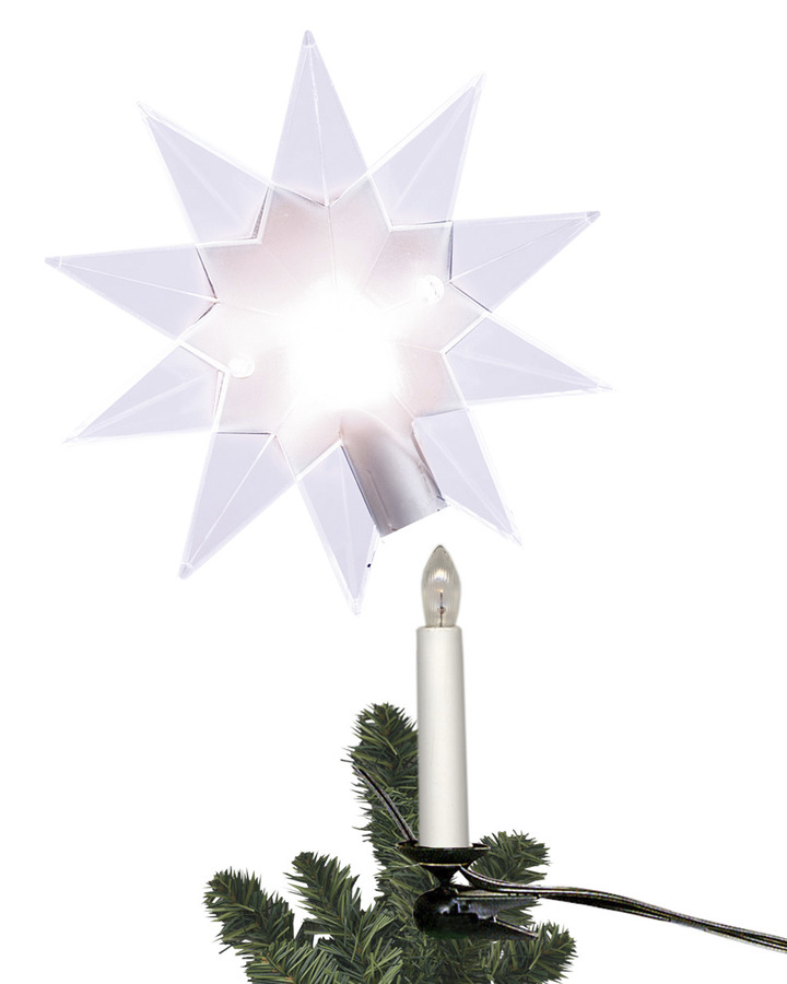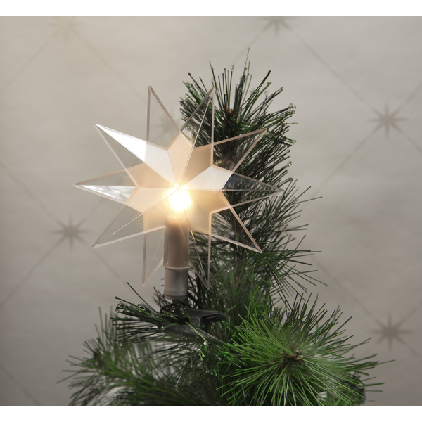 Vacker toppstjärna som placeras ovanpå ett granljus. Toppstjärnan skapar ett mysigt sken och bildar härlig stämning.