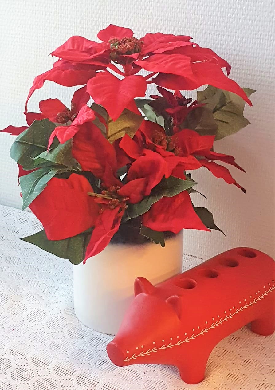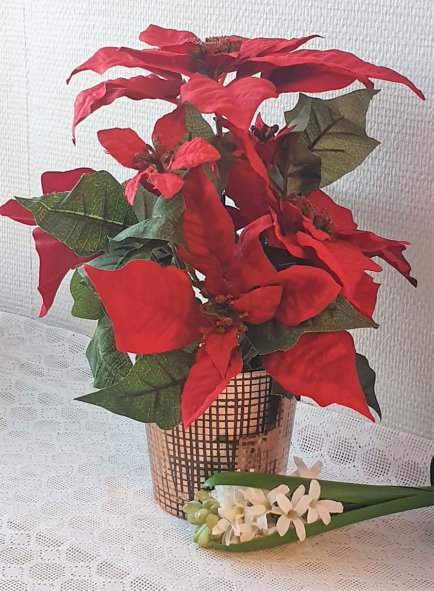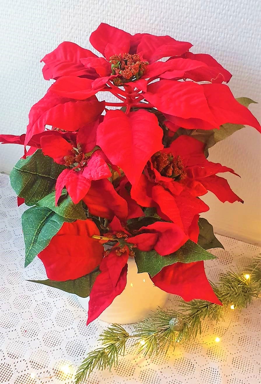 Jättefin stor röd julstjärna, ser så naturlig ut. Konstgjord större julblomma som passar bra både i fönstret och på bordet som en fin juldekoration. Perfekt för alla oss som är allergiska.
