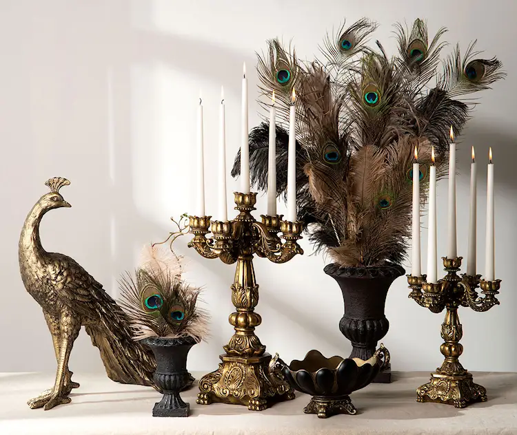 Vacker 5-armad kandelaber i guldfärg. Riktigt stor och maffig kandelaber som blir ett blickfång både på middagsbordet och i vardagsrummet – för dig som älskar stil och detaljer.
