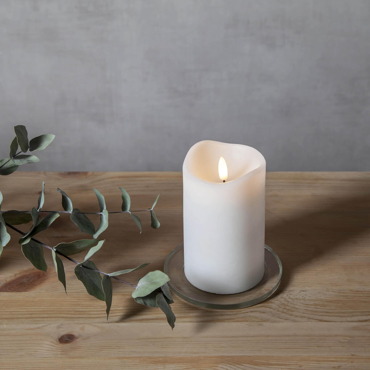 Vaxljus med otroligt naturtrogen låga som lyser upp med varmvitt sken. Ljuset har en inbyggd timer.