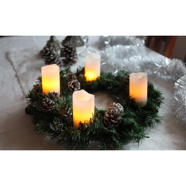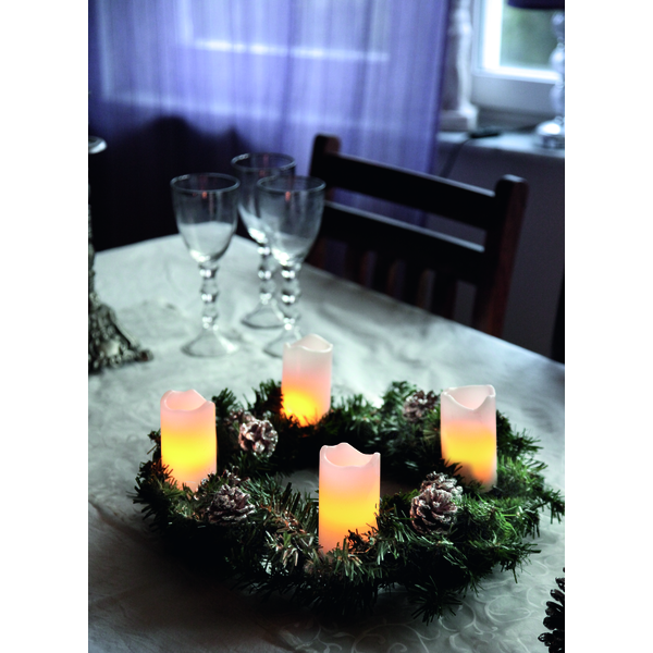 <span class="font-light-16">4-pack vita vaxljus med fjärrkontroll. </span><span class="font-light-16">Den vågiga ytan på ljusets topp gör att det ser väldigt verklighetstroget ut. </span><span class="font-light-16">Ljusen ger ifrån sig ett behagligt och mysigt sken. </span><span class="font-light-16">Alla ljusen är 10cm höga och batteridrivna.</span>;;;;;;; Färg:- Vit Ljusfärg:- GulBredd:- 5cmHöjd:- 10cmAnvändningsområde:-InomhusAntal lampor:- 4Antal LED per lampa:- 2Ljuskälla ingår:- JaTyp av ljuskälla:- LEDSockel:- Ej utbytbarBatteriinformation:- 9 batterier CR2032 ingår.Timer:-; 6 h på, 18 h av, repeterande