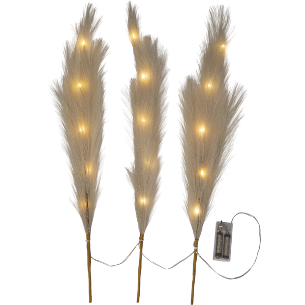 LED Dekorationskvist Fjädrar Beige - 3-pack