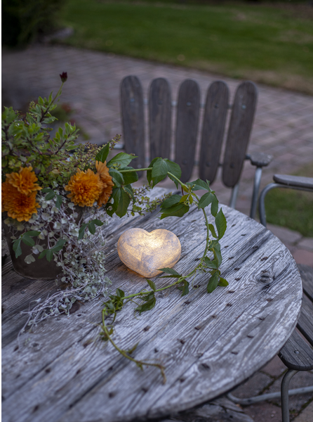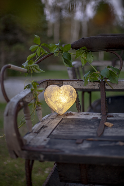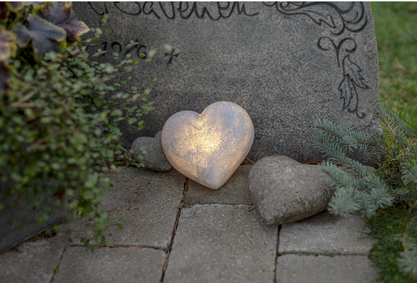 Fint hjärta gjord av polystone som ser ut som sten. En vacker dekoration som passar lika bra inne som ute. Lyser med varmvitt sken och har inbyggd timer. Drivs av 3xAAA batterier, dessa ingår inte.