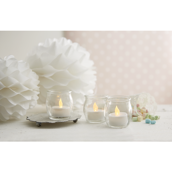 3-pack gaslyktor med värmeljus. Ljusen har en flimrade lågan som ger ett verklighetstroget utseende. Perfekta för att lysa upp och skapa en mysig stämning i huset. Drives med 3 batterier CR2032 (ingår) livslängd 80 h.