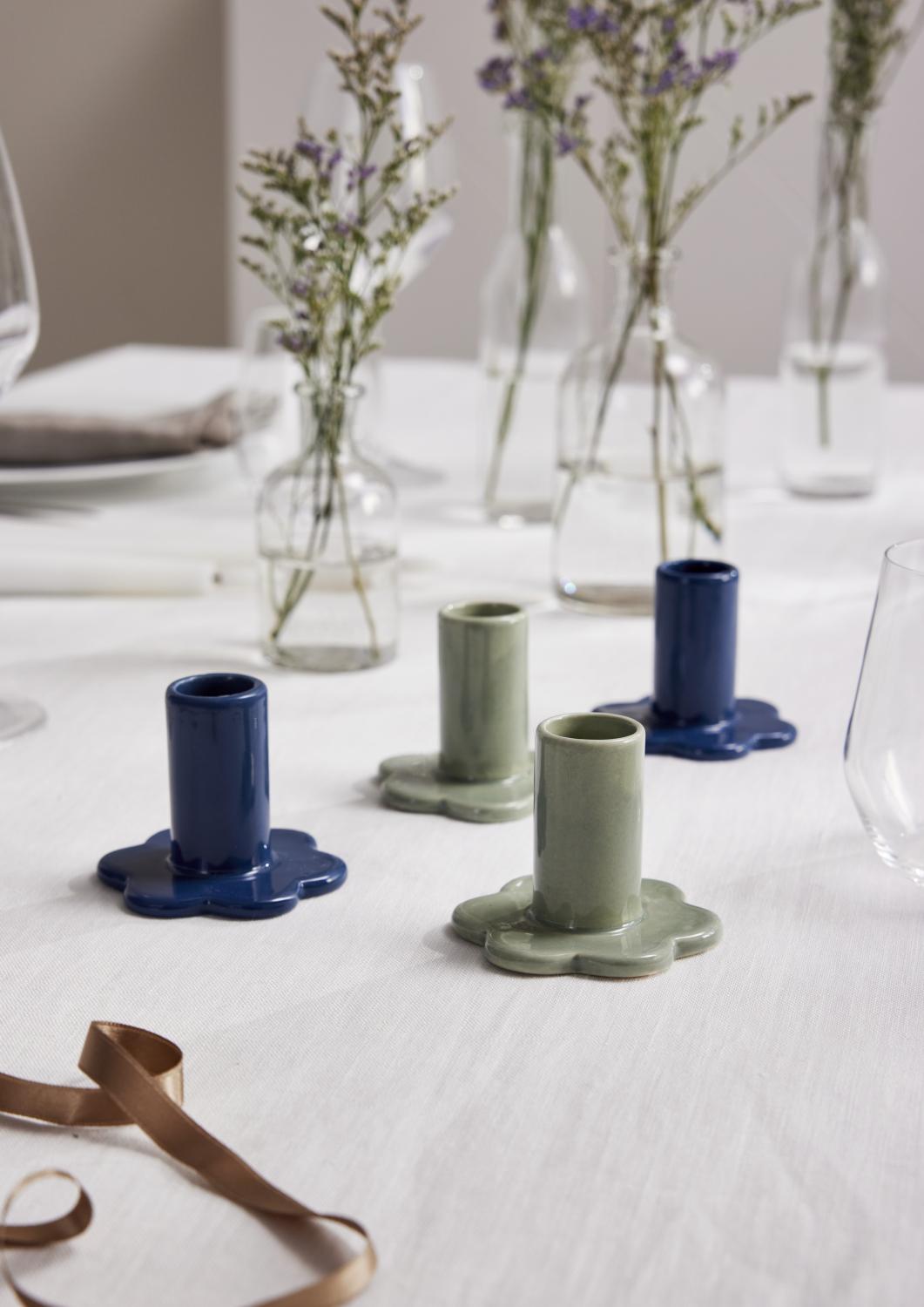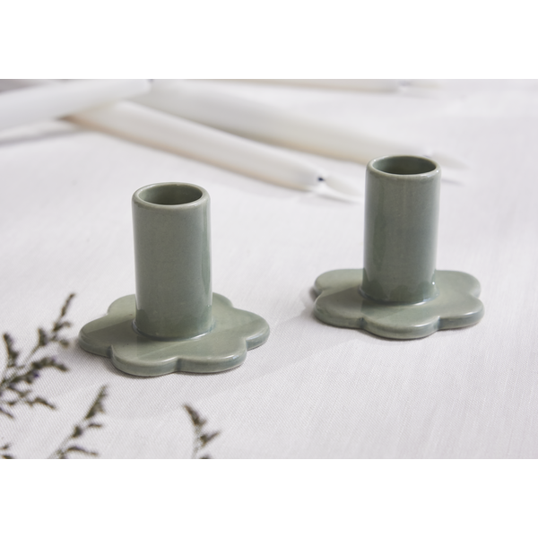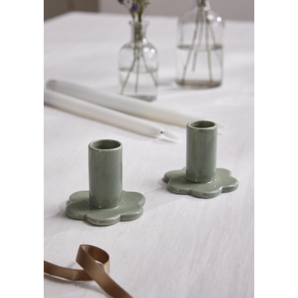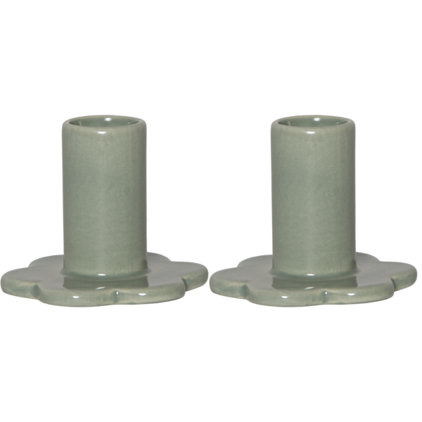 Bloom är ett 2 pack ljushållare för levande ljus eller batteriljus i storleken 7,5x6 cm. Gjord av porslin i en mildgrön färg. Innerdiametern på ljushå
