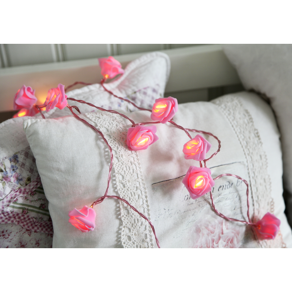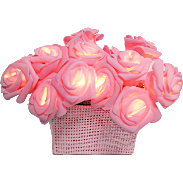 Underbar ljusslinga med rosa rosor och matchande korg, slingan går givetvis att ta loss och dekorera med. Ljusslingan har 15 varmvita LED-lampor och är batteridriven. Den inbyggda timern gör det lätt att ställa in när ljusslingan ska lysa.;;;;;;;;;;;Färg:- RosaProduktkabelns färg:- Transparent rosa