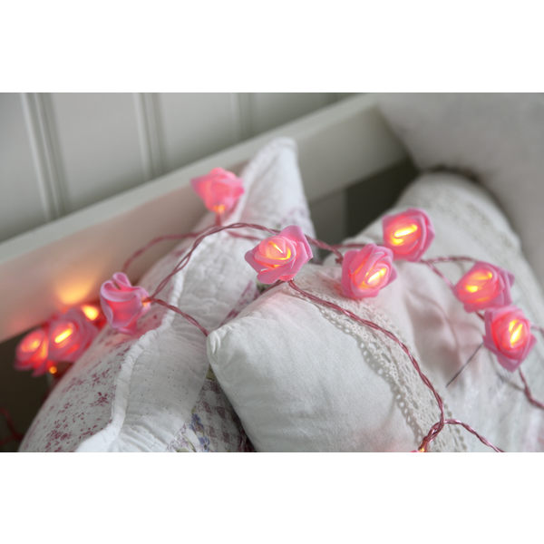 Underbar ljusslinga med rosa rosor och matchande korg, slingan går givetvis att ta loss och dekorera med. Ljusslingan har 15 varmvita LED-lampor och är batteridriven. Den inbyggda timern gör det lätt att ställa in när ljusslingan ska lysa.