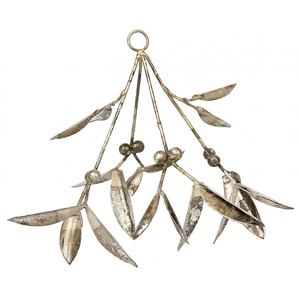 En vacker mistel i champagnefärgad antikbehandlad metall att hänga upp i dörrposten. En fin dekoration att hänga upp till jul.