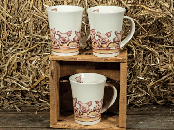 Mugg med grisar som står och hänger över staketet, muggar för alla djur älskare i fin porslin & bra kvalitet. Tål diskmaskin och mikrovågsugn. Fin present att ge eller få.