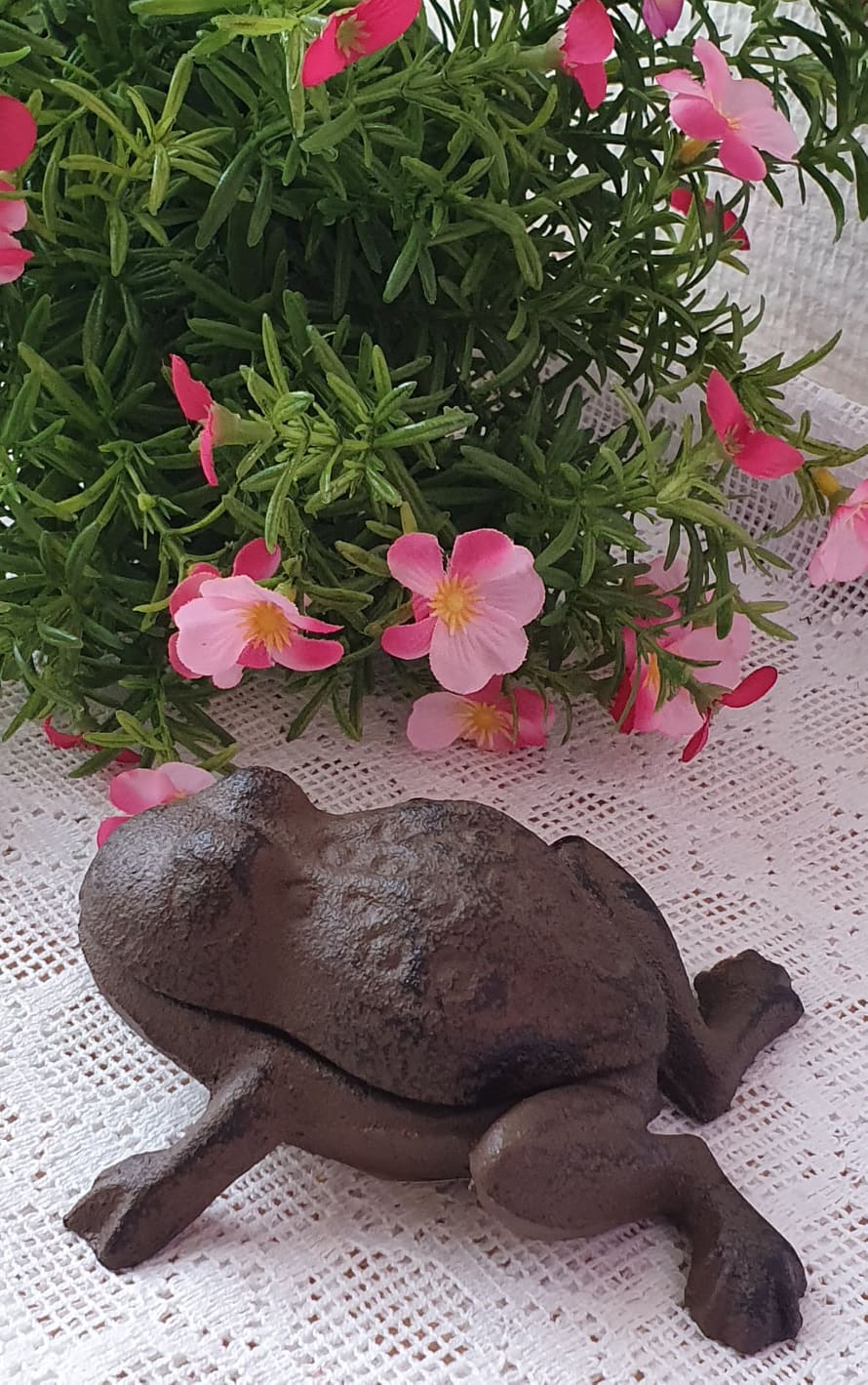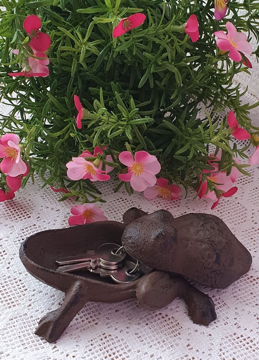 Nyckelgömma i form av en groda. En nyckelpiga i järn som går att lyfta skalet, men är lika snygg utan att nyttja gömman.