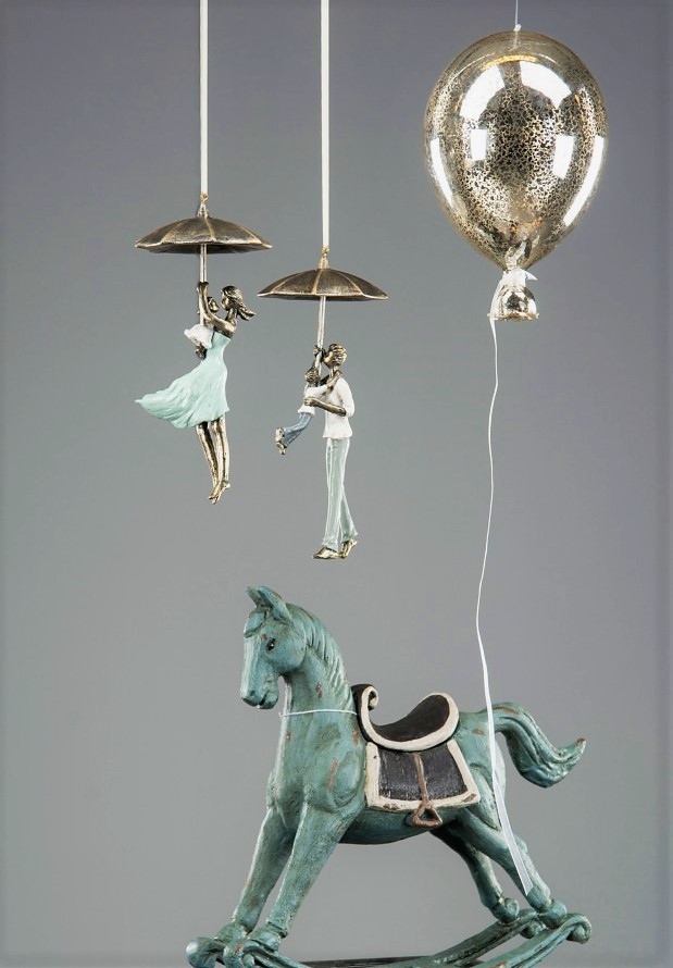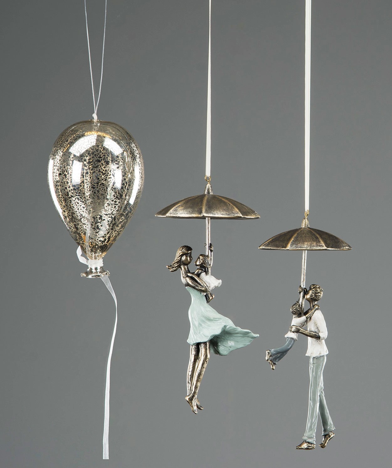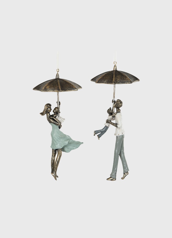 Så fin familj med paraply i form av en mamma och pappa flygandes i ett paraply med ett varsitt barn i handen. Så fin att hänga i barnens rum.