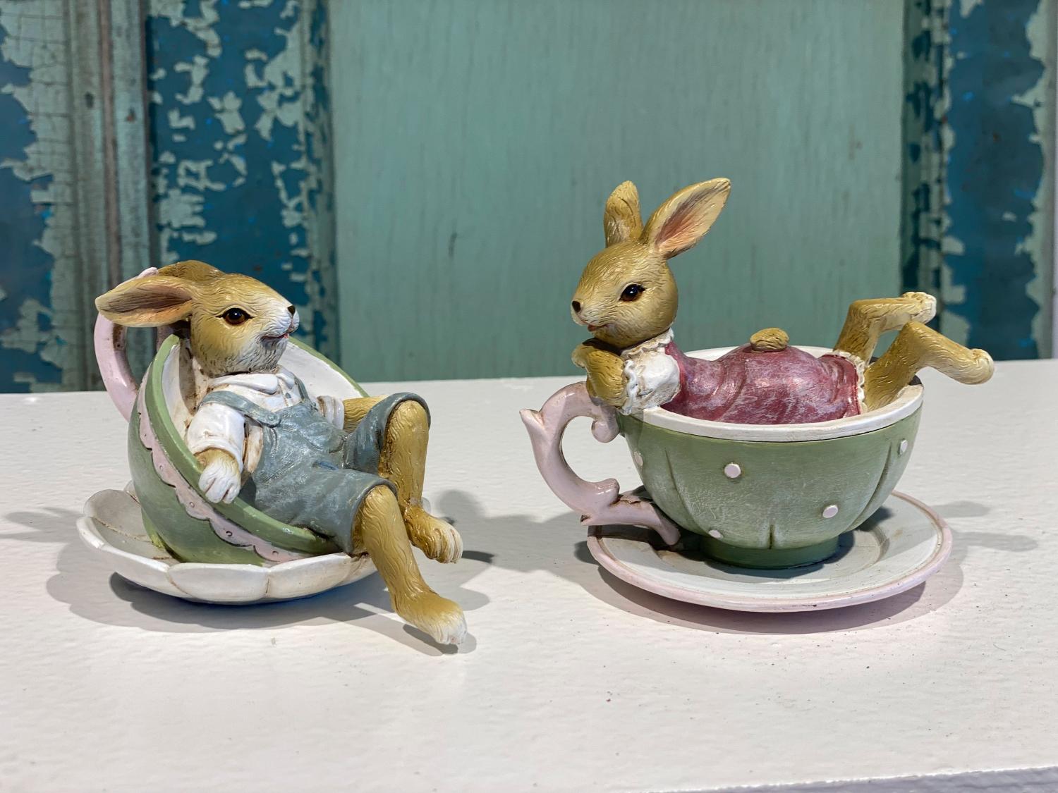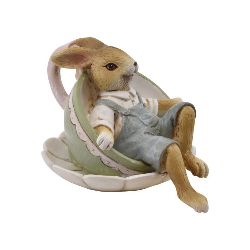 Sötaste gammaldags stil påskhare i kopp med vackra detaljer. Vacker välgjord inredningsdetalj som fångar ögats uppmärksamhet. Lantligt söt dekoration under den glada påskens tid och årets runt.