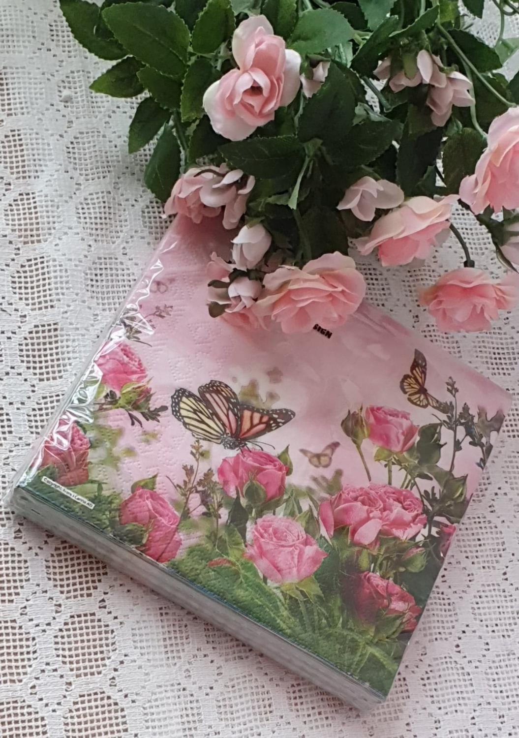 Vackra servetter med rosor och fjärilar. Fina pappersservetter.