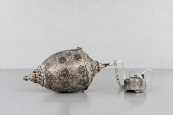 Taklampa i härlig stil i vacker antkguldbrun färg. Vacker orientalisk stil. Genomskinlig sladd som avslutas med en vanlig väggkontakt.