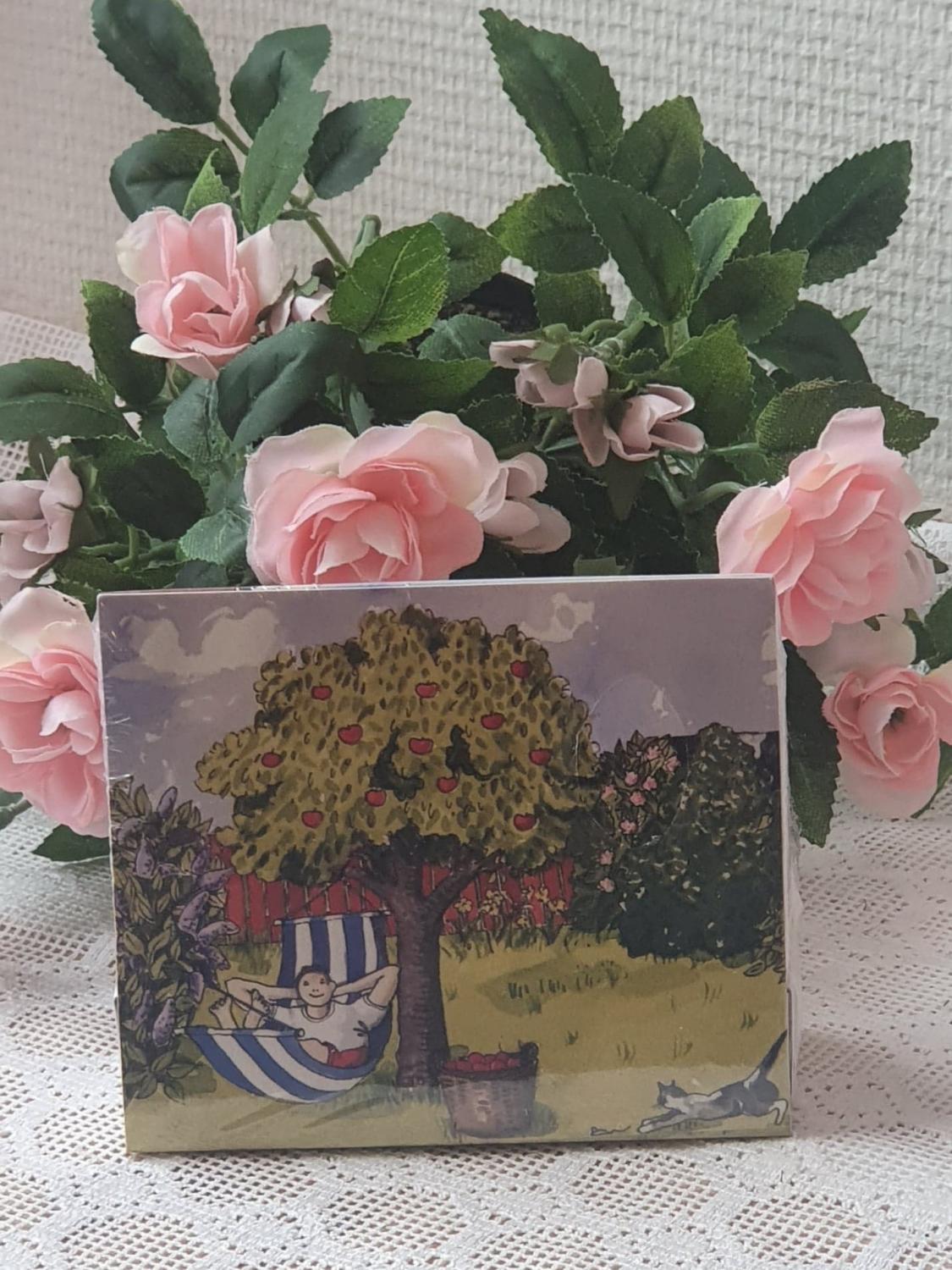 En bör alltid ha tändstickor i hemmet, om det så är till spisen eller för att tända levande ljus. En tändsticksask med vacker torpstuga som motiv. Motivet är somrigt och gör tändsticksasken till en härlig inredningsdetalj som piggar upp rummet den ligger i. Tändstickor medföljer.