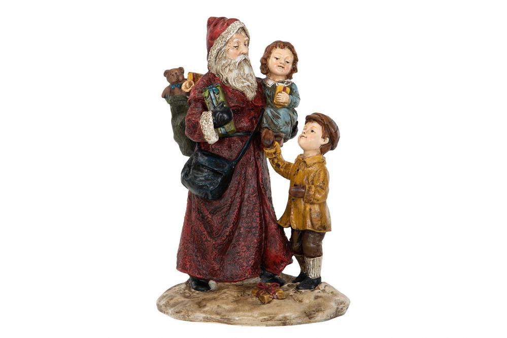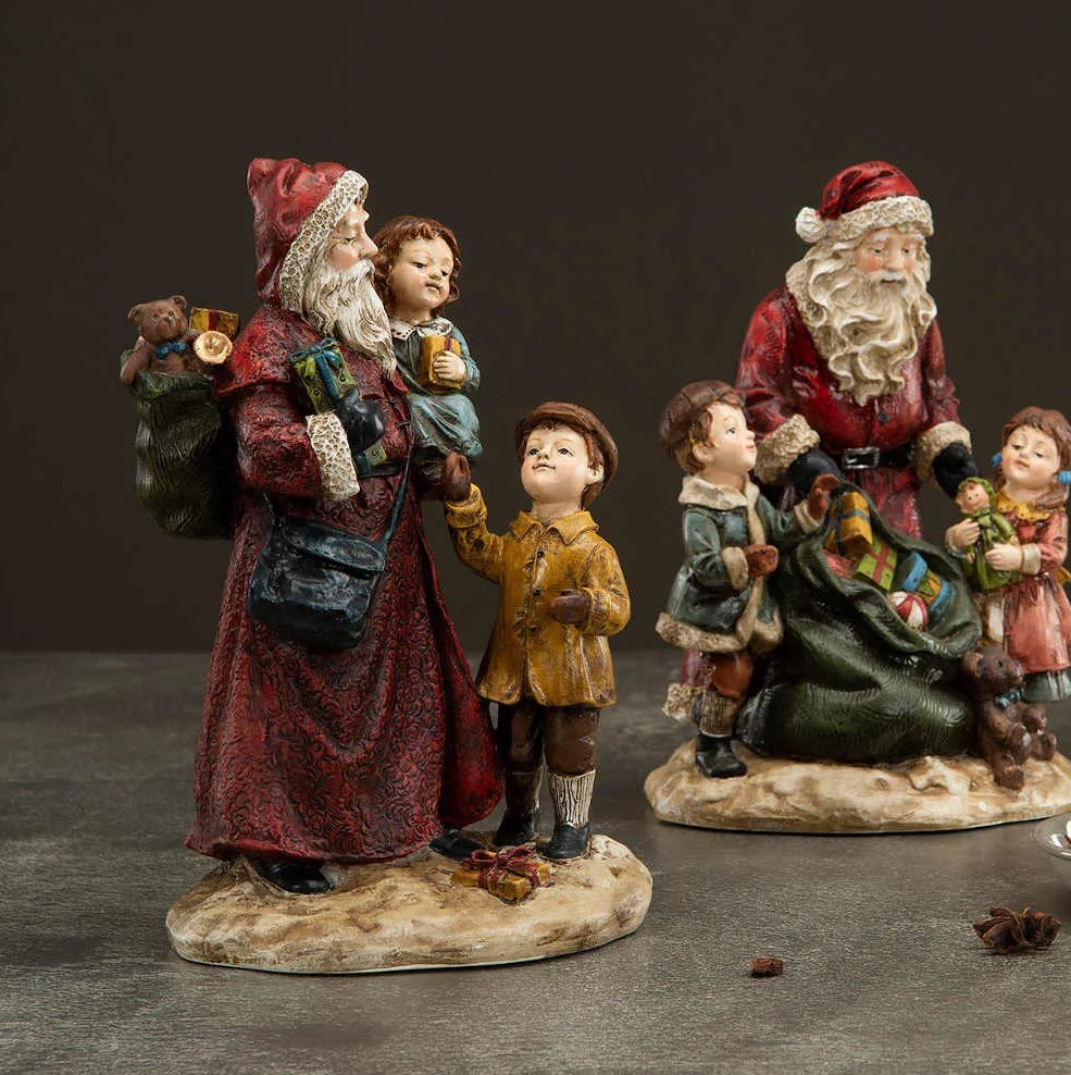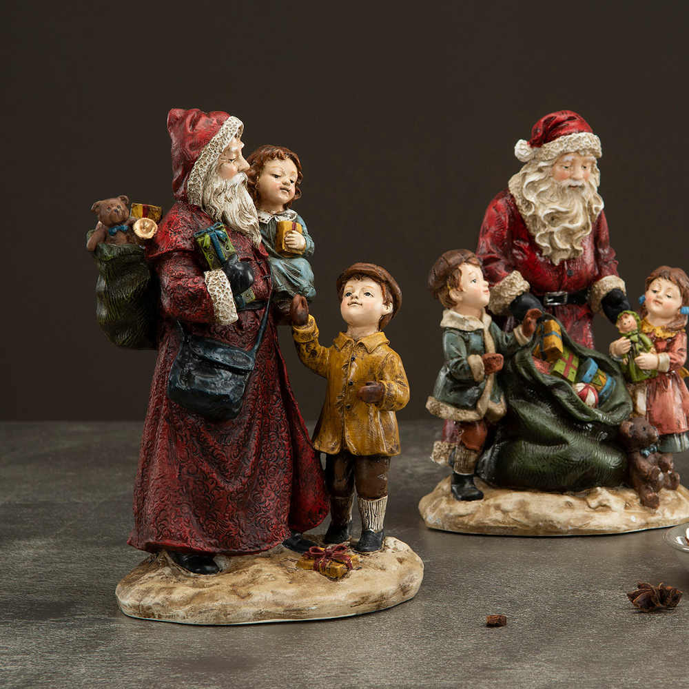 Gammaldags fin tomte med barn och julklappar, fin att placera tillsammans med dina andra juldekorationer runt om i ditt hem.