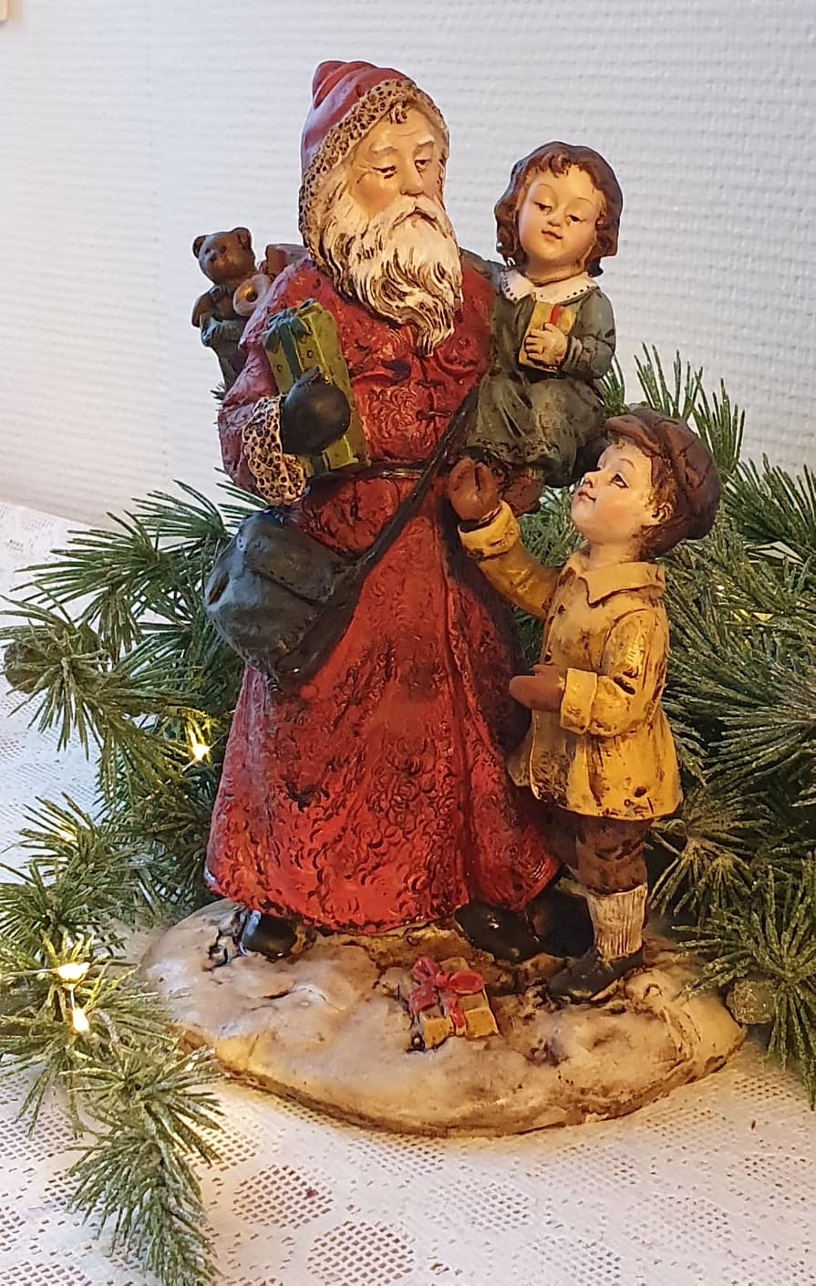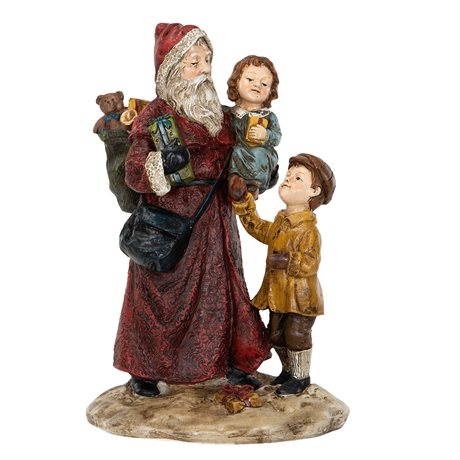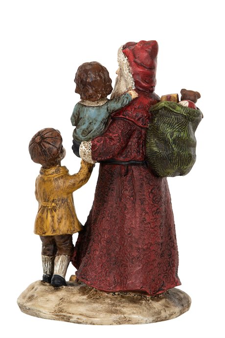 Gammaldags fin tomte med barn och julklappar, fin att placera tillsammans med dina andra juldekorationer runt om i ditt hem. Vacker juldekoration med fina detaljer.