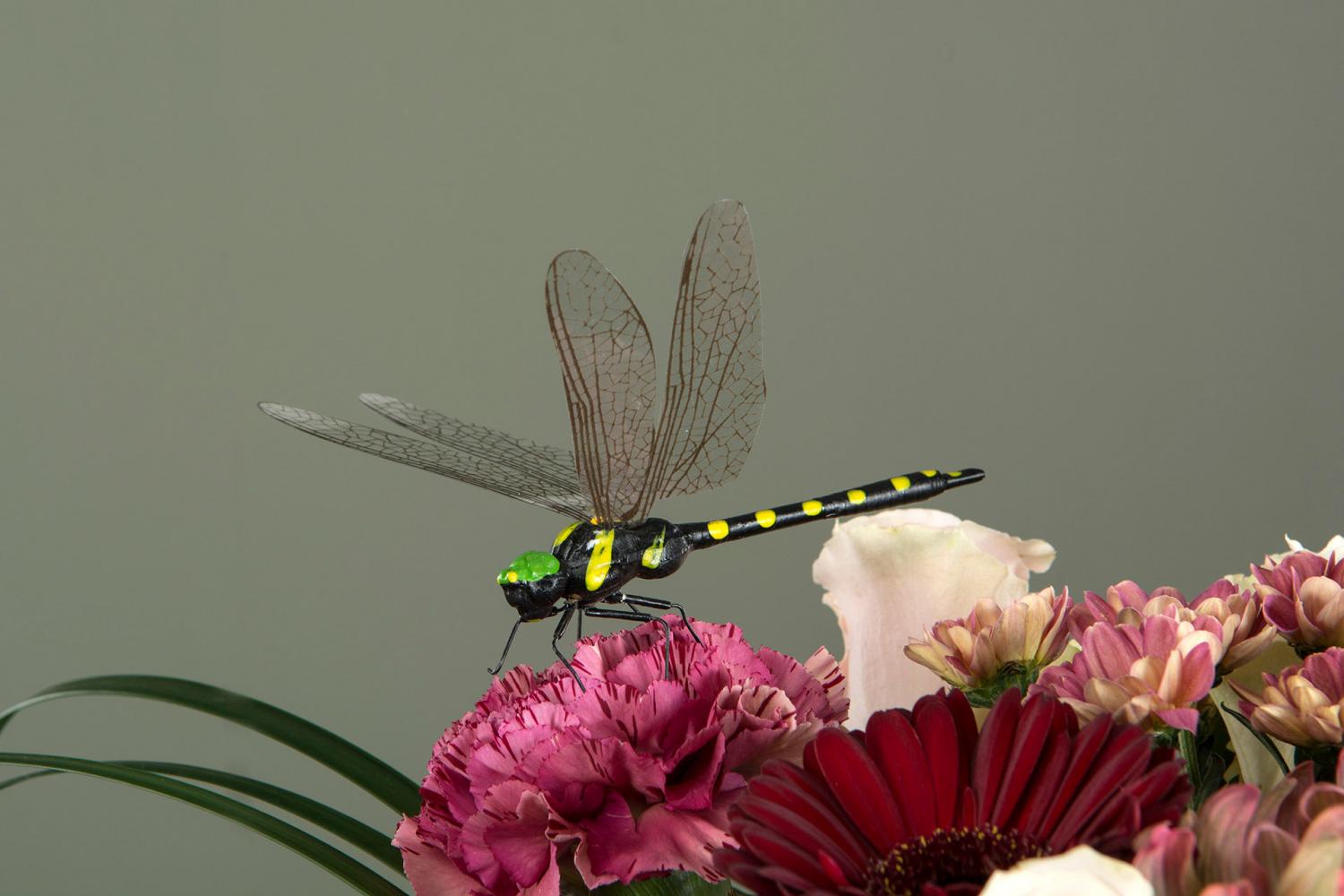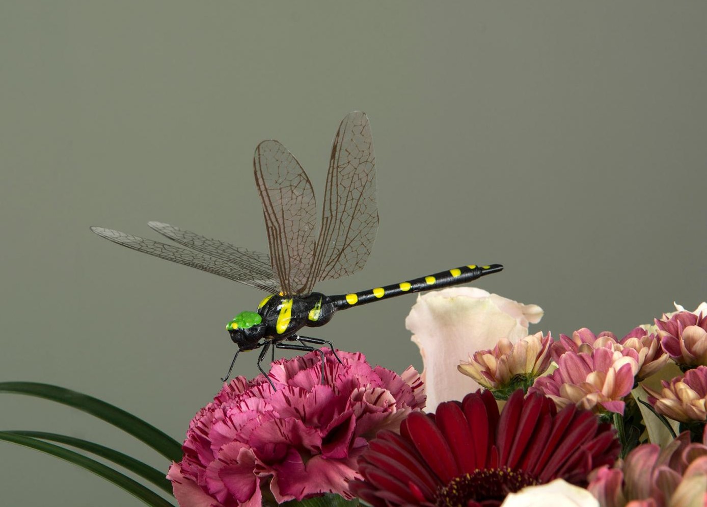 Bedårande söt dekoration trollslända med clip på undersidan för att enkelt kunna sätta fast den där man vill dekorera. Den är i färgerna svart/grön/gu