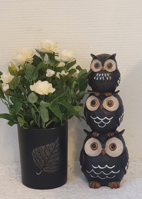 Otroligt charmigt uggleakrobater i polystone med fina detaljer som passar utmärkt i hylla vid fönster eller på byrån.