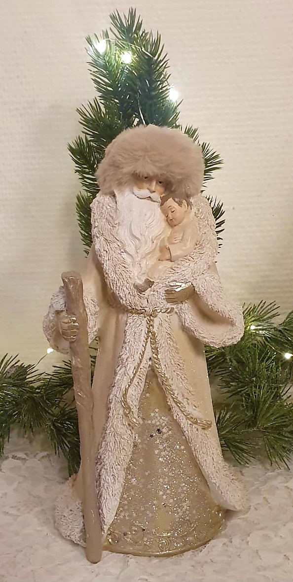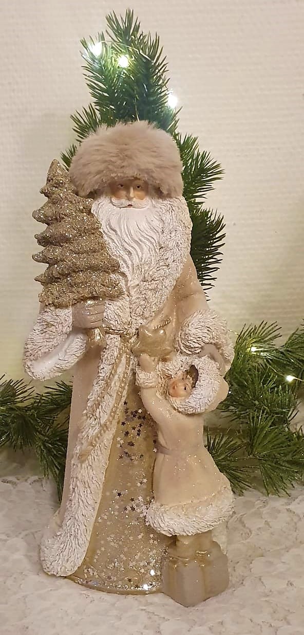 Klassisk och fina tomtar i vackra färger med pälsig kappa. Tomtarna har inslag av glitter på kroppen. Vacker juldekoration att placera ovanför en spis eller på en fönsterbräda hemma för att skapa julstämning.